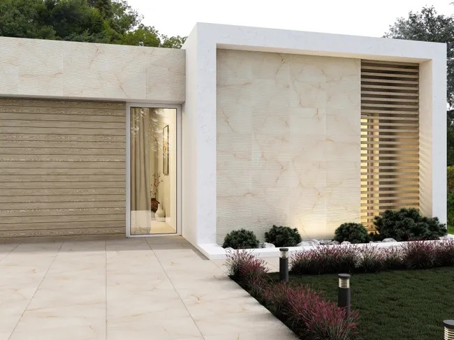 Azulejo porcelánico Outdoor-Porto efecto mármol. Se distingue por ser un mármol cálido que se caracteriza por tener un fondo puro más intenso, acompañado por unas estilizadas vetas en tonos dorados y grises, creando superficies de lo más luminosas y elegantes.Aseguramos el mismo tono y calibre en el mismo pedido. En pedidos posteriores puede variar en función de las partidas.