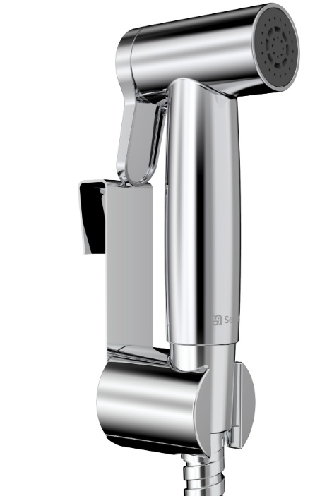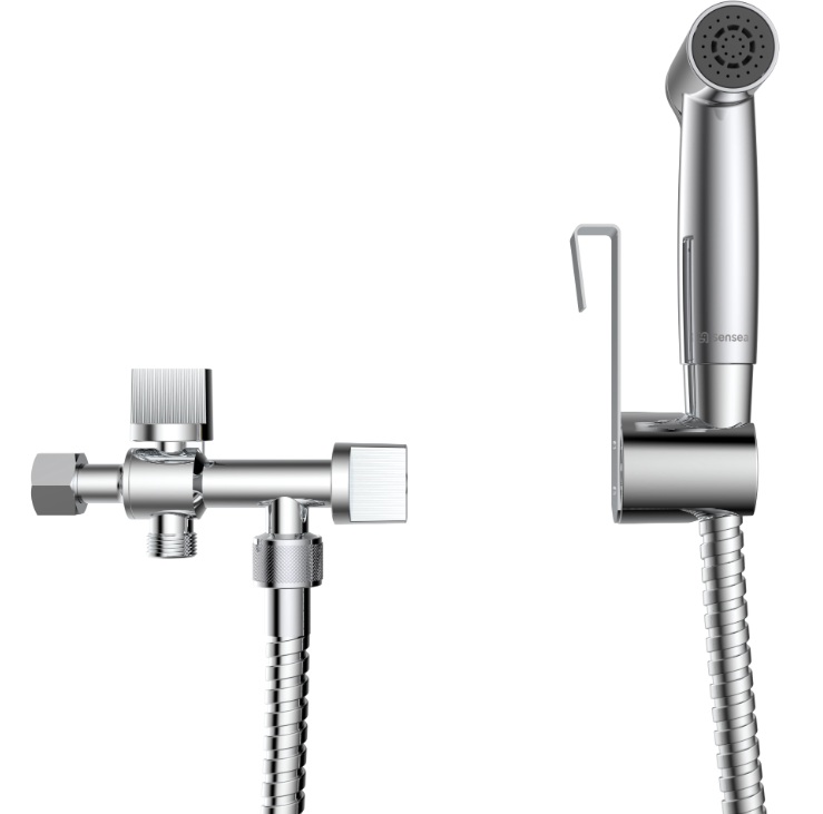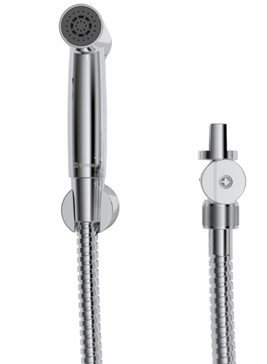 Ducha inodoro Sensea serie Essential fabricada en latón con acabado de color cromo. Cuenta con caudal regulable, soporte y tuerca de oscilación antitorsión. Ofrece 5 años de garantía. Medidas: 11,8 x 5,8 x 6,1 cm (ancho x alto x fondo).