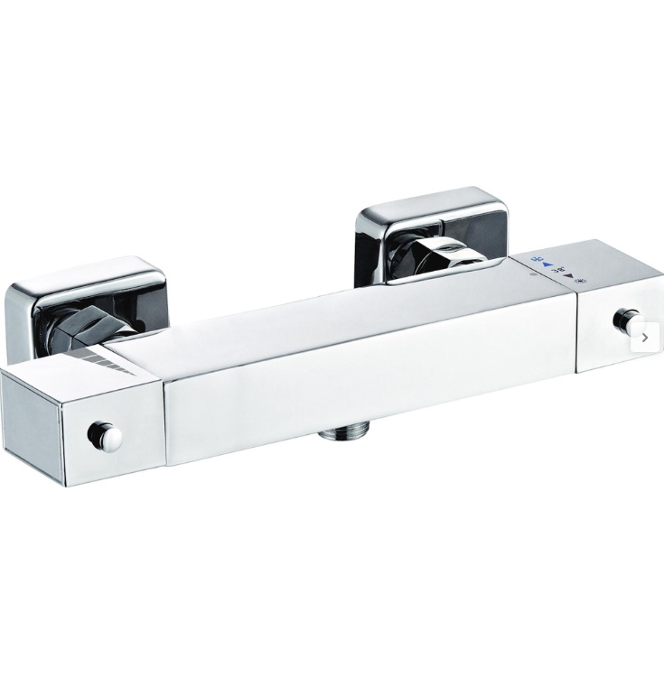 Grifo de ducha termostático con acabado cromado. Los grifos termostáticos cuentan con dos mandos: uno para controlar la temperatura en grados y otro para regular el caudal del agua. Son una gran opción para ahorrar energía, ya que la caldera tarda menos en calentar el agua, y para ahorrar agua, pues no se malgasta esperando alcanzar tu temperatura ideal. Además, el cuerpo de grifo siempre permanece frío, lo que evita posibles quemaduras. Este producto reduce el consumo de agua un 60% o más con respecto a los productos estándar o con respecto a su no utilización. No incluye mango de ducha ni flexo.