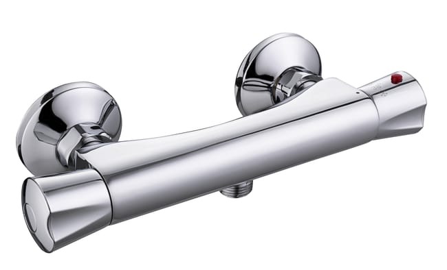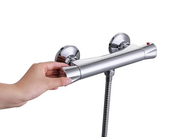 Grifo mezclador termostático ducha Nerea. Cuerpo de latón con acabado cromado. Sus formas sencillas se adaptan fácilmente a la mayoría de los estilos de baño, incluso para espacios pequeños. Producto garantizado durante 5 años.