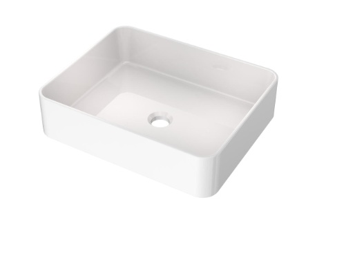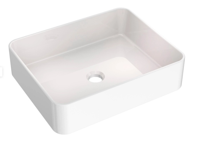 Lavabo de sobreponer rectangular, de color blanco y medidas 47x36x11cm.