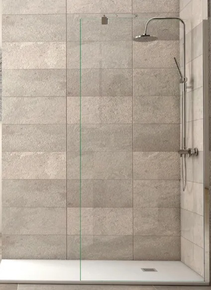 Mampara de ducha frontal fija serie Caribe pro. Medidas 80cm. Cristal transparente de 6mm. Perfil en aluminio cromado.
