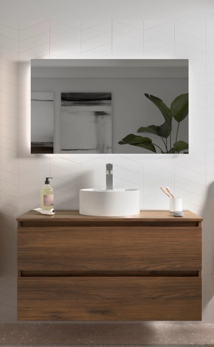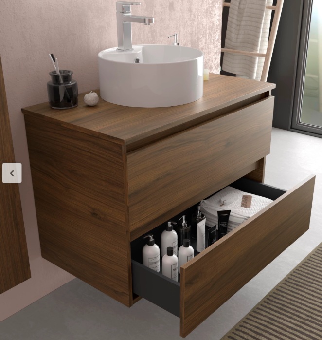 – Fabricada en el mismo acabado del mueble, con cantos en PVC resistentes a zonas hĆŗmedas.