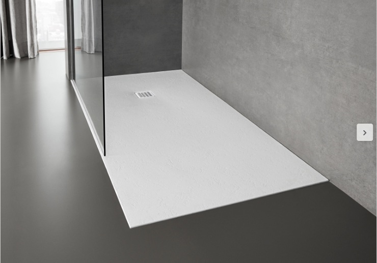 Plato de ducha de resina rectangular, de la marca Roca, en color blanco. Medidas 70x120cm Grosor 2,8cm.