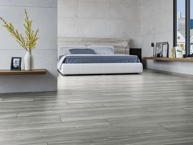 Pavimento porcelánico de la serie Helsinki, fabricado en España, con aspecto madera y acabado mate. Indicado para renovar y revestir el suelo de cualquier estancia de interior con la belleza y sofisticación que aporta la madera, pero sin sus cuidados ni mantenimiento. De bordes rectificados, posibilita un acabado con menos juntas, más uniforme y estético. Medidas: 25 x 150 cm (ancho x largo). Aseguramos el mismo tono y calibre en el mismo pedido. En pedidos posteriores puede variar en función de las partidas.
